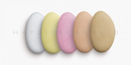 Λευκή σοκολάτα & σοκολάτα (55% κακάο) με λεπτή επικάλυψη ζάχαρης, σε διάφορες γεύσεις.