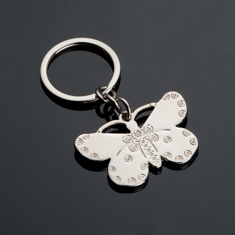 Μεταλλικό διακοσμητικό κρεμαστό μπρελόκ πεταλούδα σε χρώμα ασημί με μεταλλικό κρίκο.