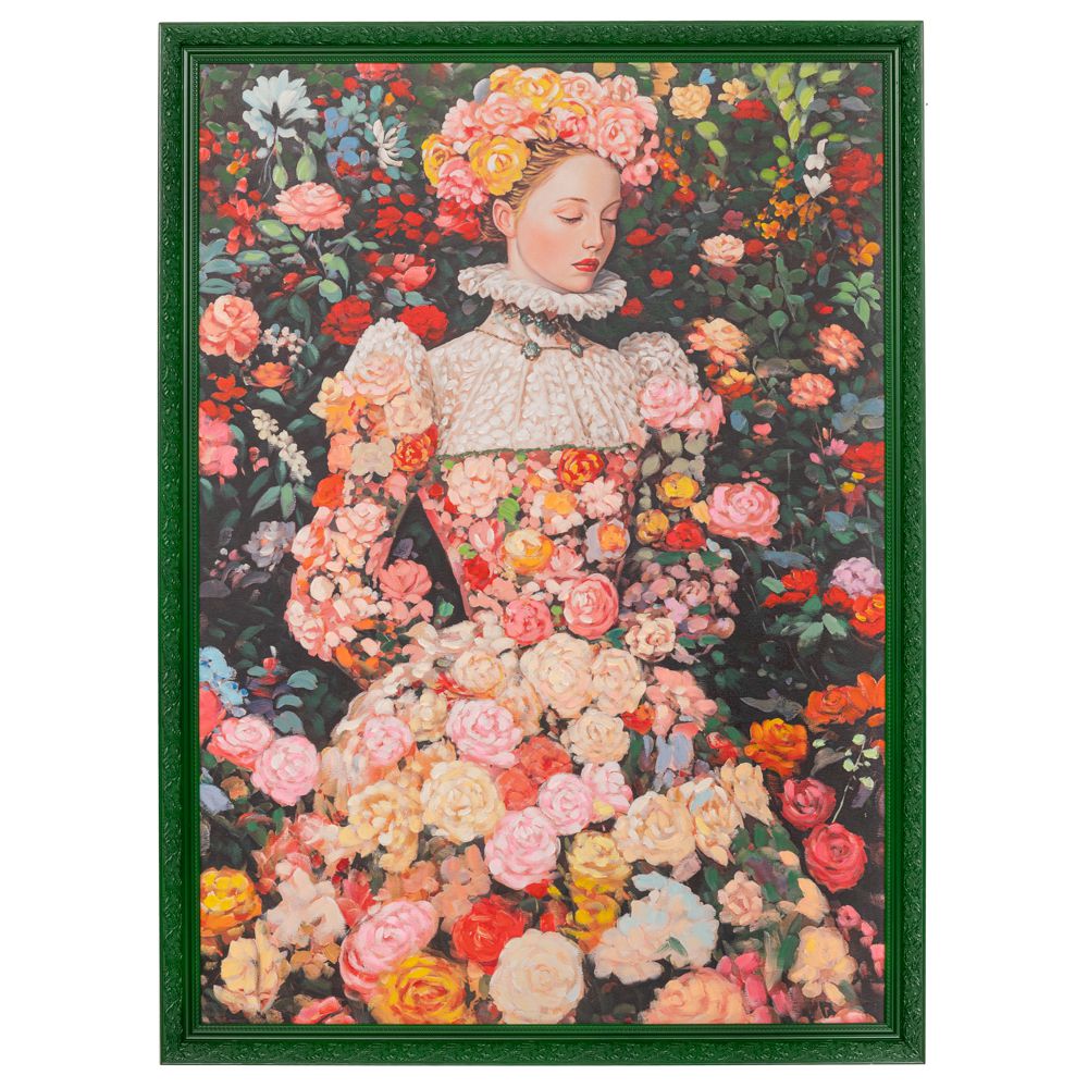 ΠΙΝΑΚΑΣ ΧΕΙΡΟΠΟΙΗΤΟΣ ΜΕ ΓΥΝΑΙΚΑ ΚΑΙ ΛΟΥΛΟΥΔΙΑ ΣΕ ΠΡΑΣΙΝΗ ΚΟΡΝΙΖΑ 110Χ150ΕΚ(100X140)
