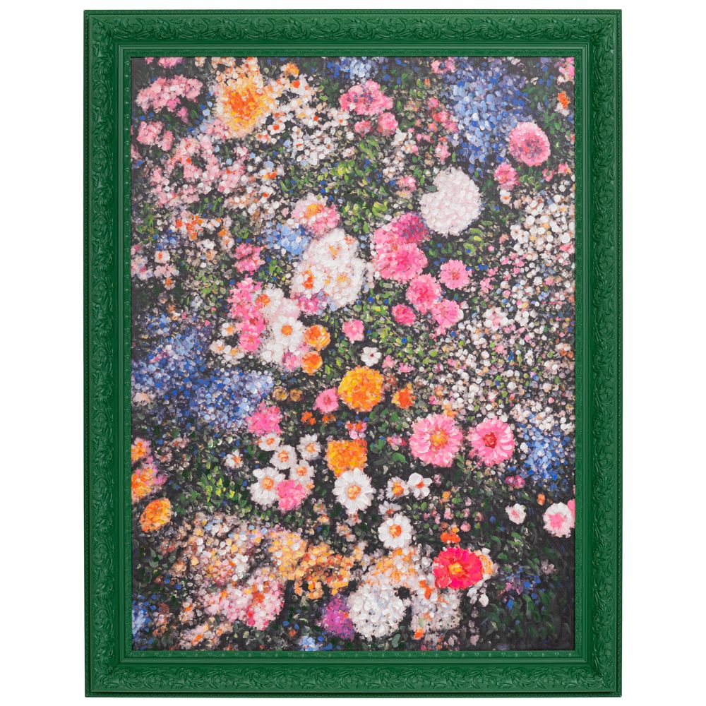 ΠΙΝΑΚΑΣ ΧΕΙΡΟΠΟΙΗΤΟΣ ΜΕ ΛΟΥΛΟΥΔΙΑ ΣΕ ΠΡΑΣΙΝΗ ΚΟΡΝΙΖΑ 107Χ139ΕΚ (90Χ120)