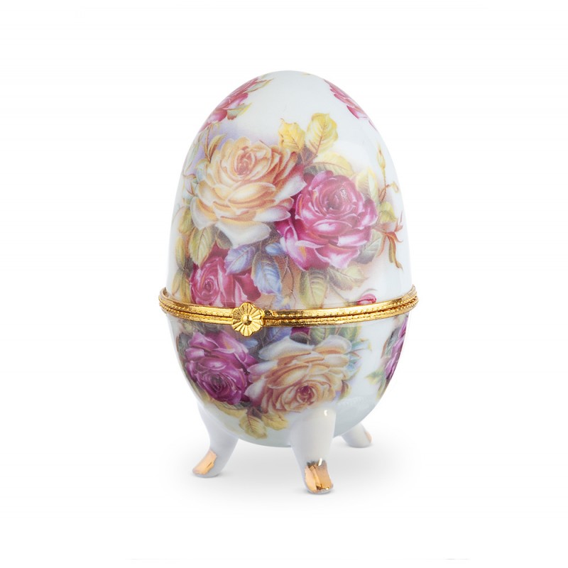 Πορσελάνινο αυγό-μπιζουτιέρα με λουλούδια και χρυσό κούμπωμα.