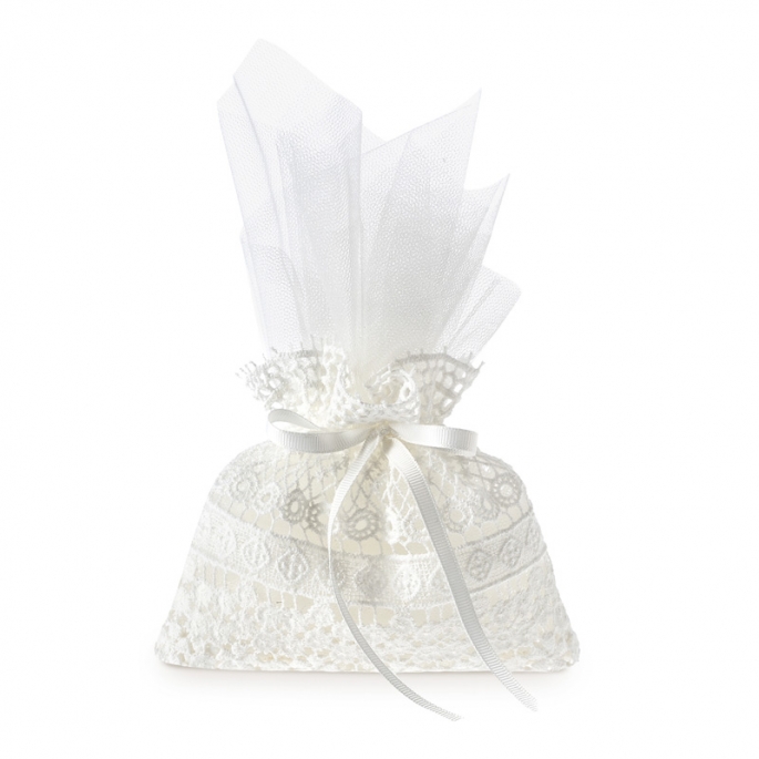 Πουγκί 13x12cm από ισπανική δαντέλα σε λευκό χρώμα.