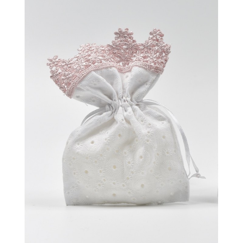 Πουγκί δαντέλα κηπούρ ροζ 10*16cm