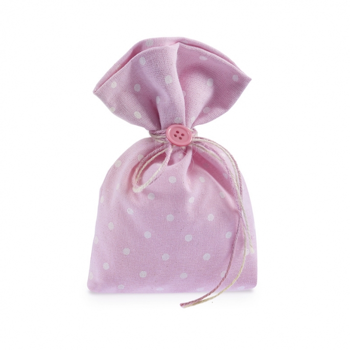 Πουγκί λινό ροζ με πουά λευκά.Ελάχιστος χρόνος παράδοσης: 8-10 εργάσιμες ημέρες. Ελάχιστη ποσότητα: 40τμχ./κωδικό.