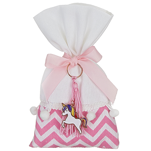 Πουγκίκαμβάς, σε διάφορα χρώματα με λευκό σεβρόν, και κορδέλα με πομ πομ.