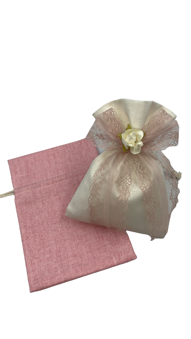 Πουγκί υφασμάτινο, στολισμένο με κορδόνι για να κλείνει, διαθέσιμο σε συσκευασία 10 τεμαχίων για δημιουργικές κατασκευές. Κομψή μπομπονιέρα για ιδιαίτερες βαπτίσεις και εντυπωσιακούς γάμους.
