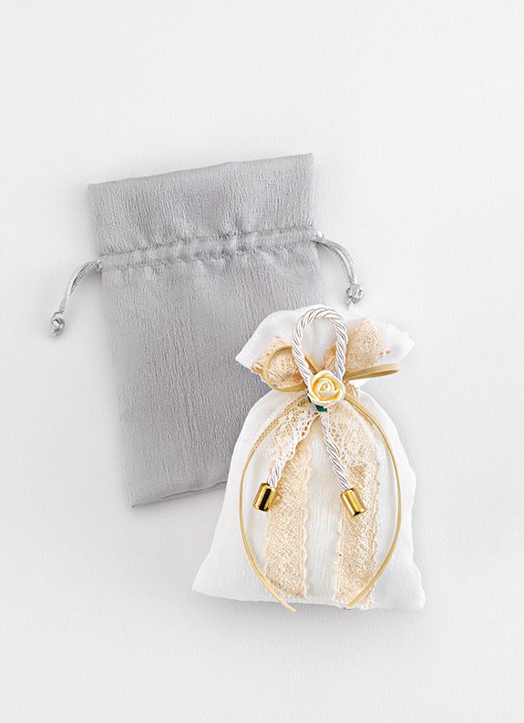 Πουγκί από ύφασμα τύπου ταφτά, στολισμένο με κορδόνι για να κλείνει, διαθέσιμο σε συσκευασία 10 τεμαχίων για δημιουργικές κατασκευές. Κομψή μπομπονιέρα για ιδιαίτερες βαπτίσεις και εντυπωσιακούς γάμους.