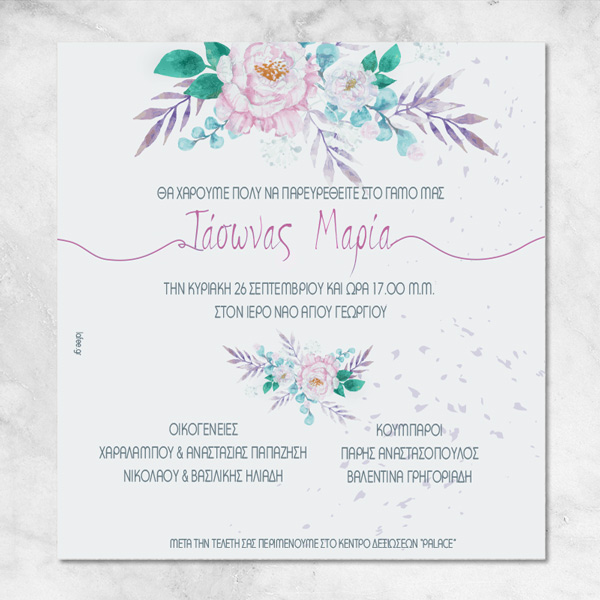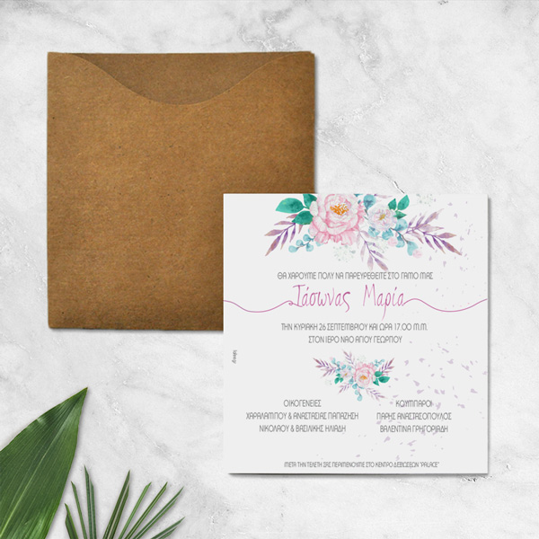 Προσκλητήριο Γάμου Floral Με φάκελο Με Εκτύπωση