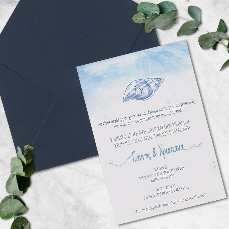 Προσκλητήριο Γάμου Κοχύλι με Φάκελο & Με Εκτύπωση