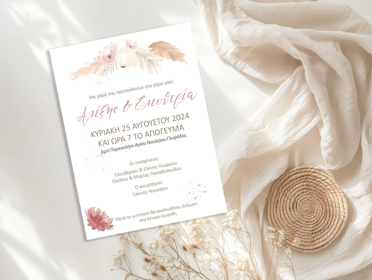 Προσκλητήριο Γάμου Πάπυρος BOHO Με Εκτύπωση