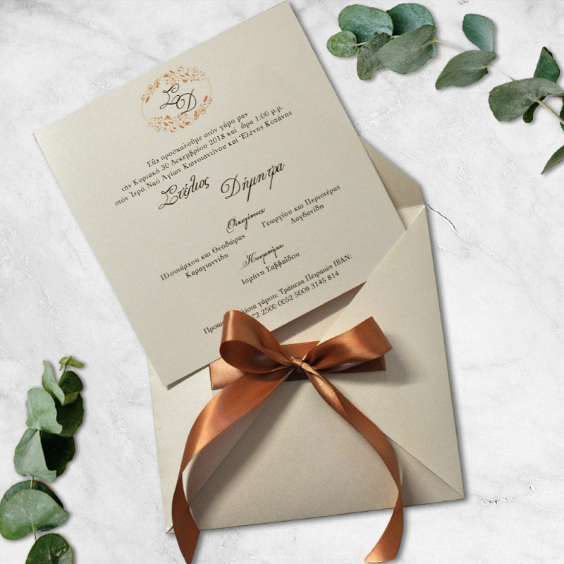Προσκλητήριο γάμου από χαρτόνι περλέ ιβουάρ 240γρ.