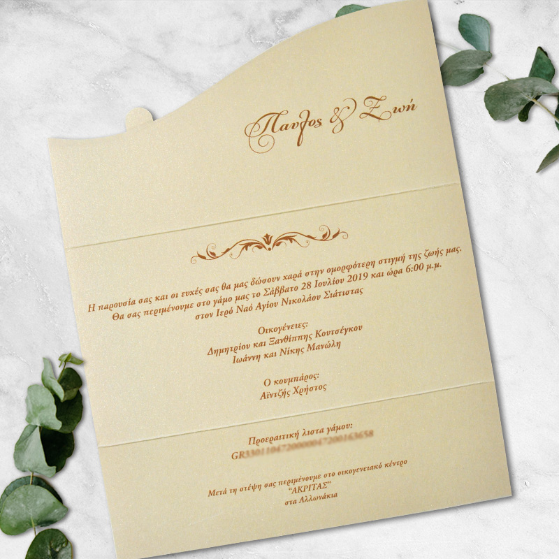 Lafee Προσκλητήριο Γάμου Τρίπτυχο Χρυσό Με Εκτύπωση