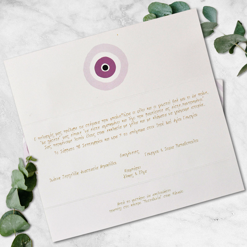 Το προσκλητήριο περιλαμβάνει δύο εκτυπώσεις, μια εσωτερική και μία εξωτερική.