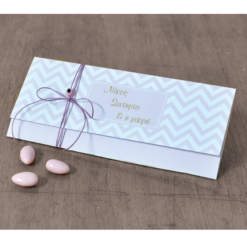 Προσκλητήριο Γάμου & Βάπτισης Μαζί Τρίπτυχο Ροζ Chevron Ματάκι Με Εκτύπωση