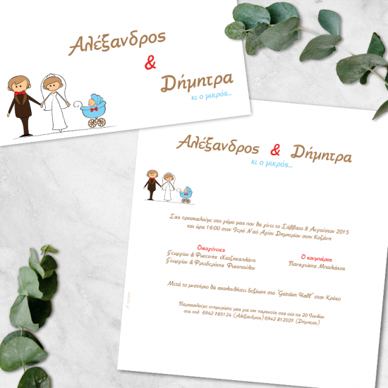 Προσκλητήριο Γάμου & Βάπτισης Τρίπτυχο Με Εκτύπωση