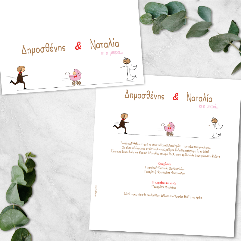 Προσκλητήριο Γάμου & Βάπτισης Τρίπτυχο Με Εκτύπωση