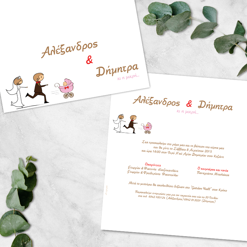 Προσκλητήριο Γάμου & Βάπτισης Τρίπτυχο Με Εκτύπωση