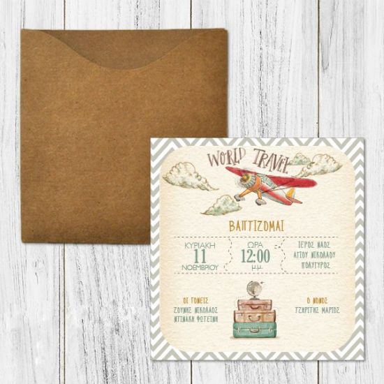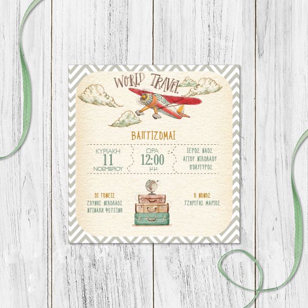 Προσκλητήριο Βάπτισης Αεροπλάνο Με Εκτύπωση
