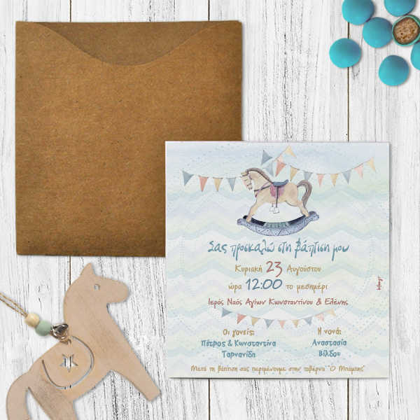 Προσκλητήριο Βάπτισης Αλογάκι Με Εκτύπωση
