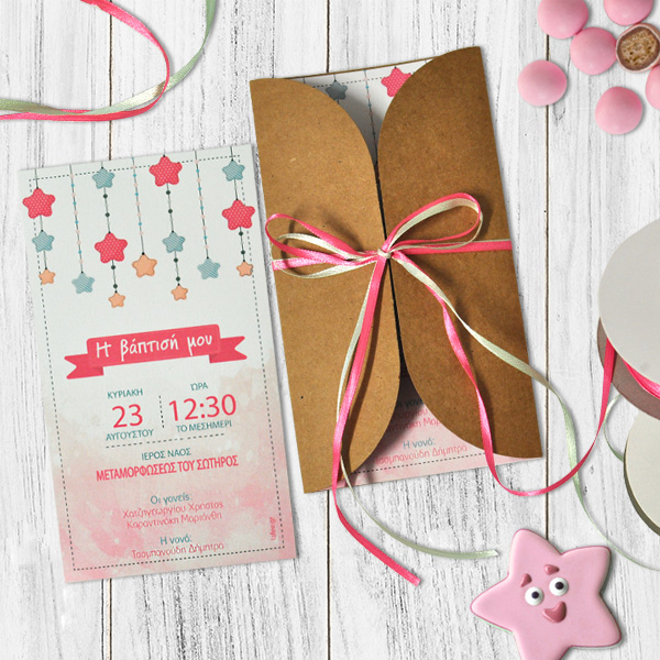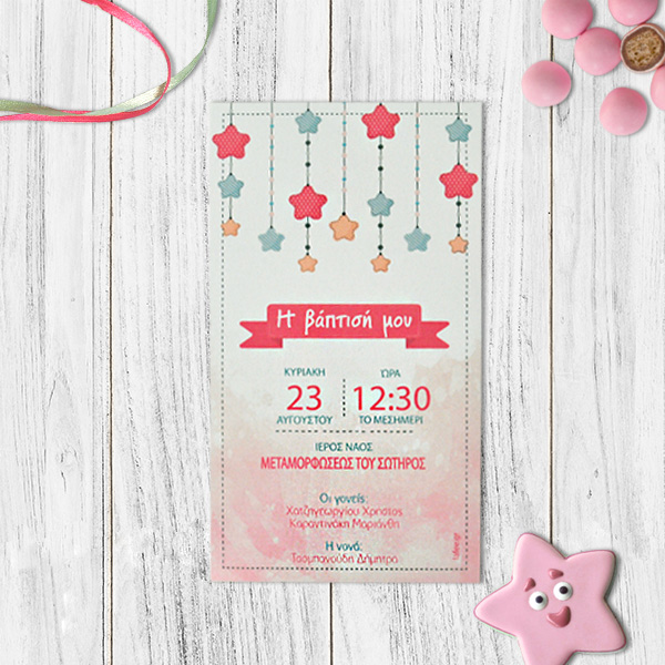 Προσκλητήριο Βάπτισης Αστεράκι Κορίτσι Με Εκτύπωση