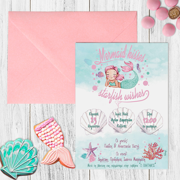 Προσκλητήριο Βάπτισης Γοργόνα Με Εκτύπωση
