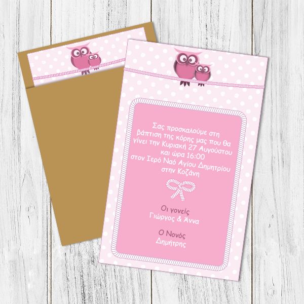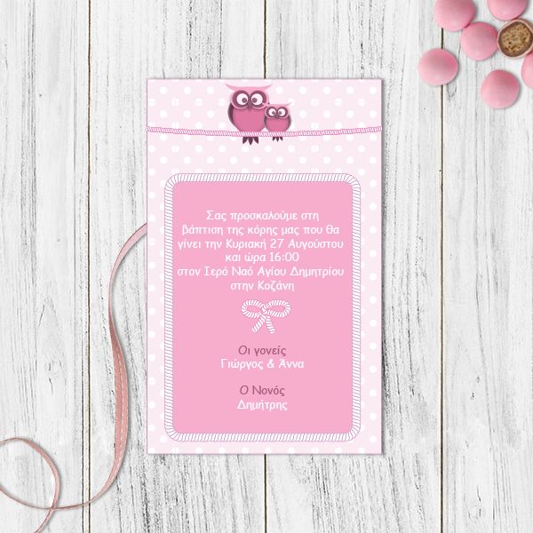 Προσκλητήριο Βάπτισης Κουκουβάγιες Με Εκτύπωση