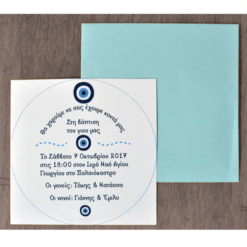Προσκλητήριο Βάπτισης ματάκι σε ματ χαρτί οπαλίνας 300γρ.