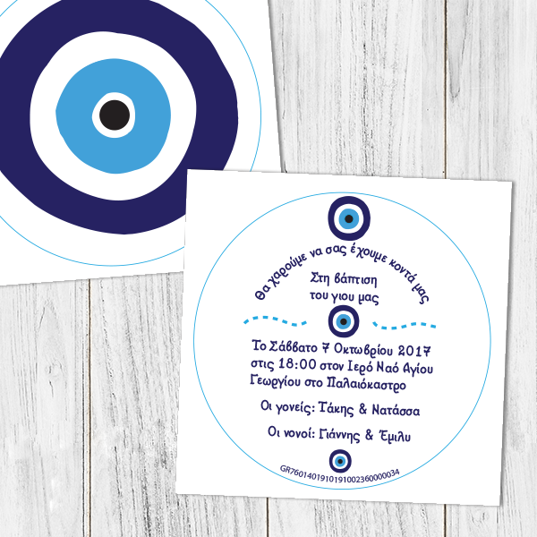 Προσκλητήριο Βάπτισης Ματάκι Με Εκτύπωση