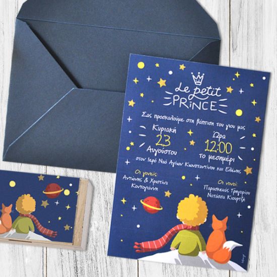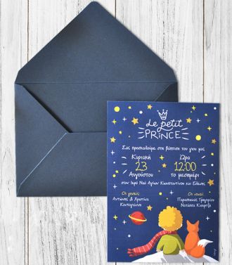 Προσκλητήριο Βάπτισης Μικρός Πρίγκιπας με Φάκελο & Με Εκτύπωση
