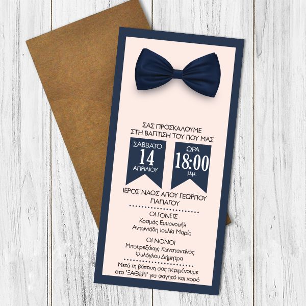 Προσκλητήριο Βάπτισης κάρτα σε ματ χαρτί οπαλίνας 300γρ