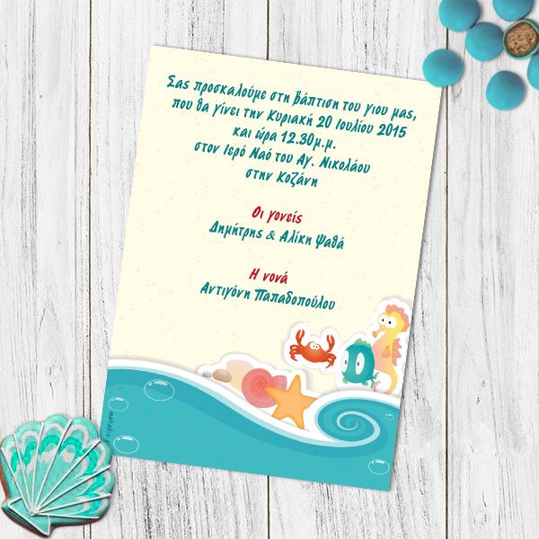 Προσκλητήριο Βάπτισης Παπυράκι Θαλασσινό Με Εκτύπωση