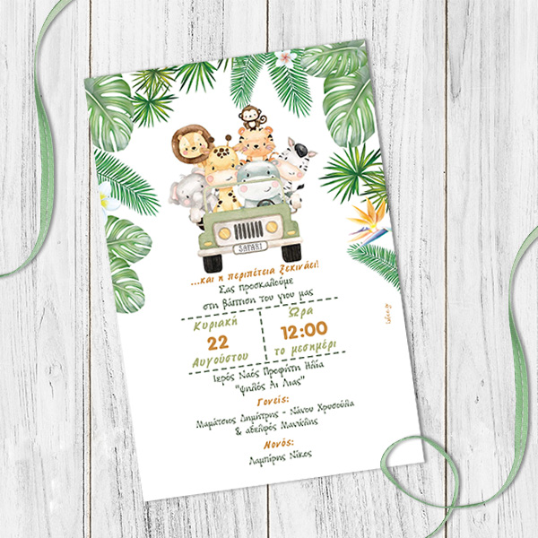 Προσκλητήριο Βάπτισης Πάπυρος Ζωάκια της Ζούγκλας Με Εκτύπωση