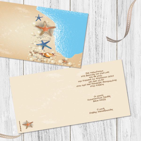 Προσκλητήριο Βάπτισης Θαλασσινό Με Εκτύπωση