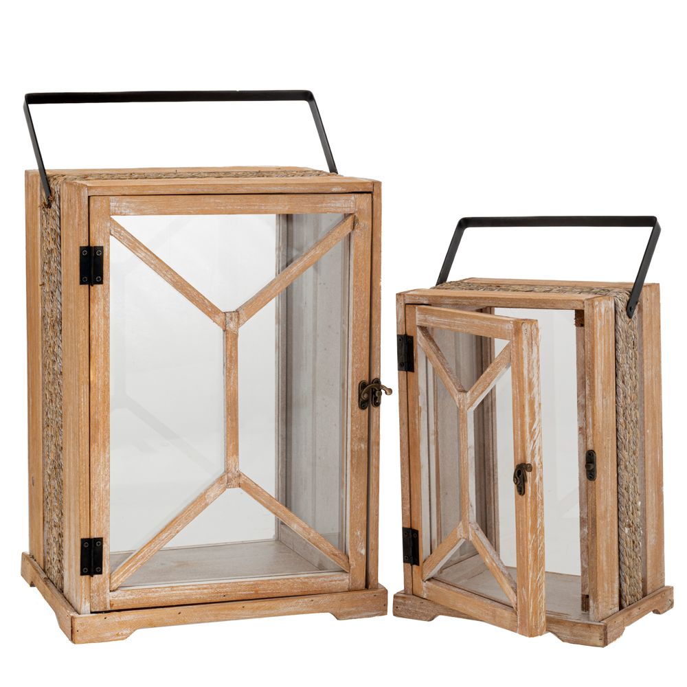 ΣΕΤ 2 ΦΑΝΑΡΙ ΛΕΥΚΟ ΞΥΛΙΝΟ ΜΕ ΜΑΥΡΟ ΧΕΡΟΥΛΙ 30,5Χ22Χ52,5 21,5Χ16Χ40ΕΚ
