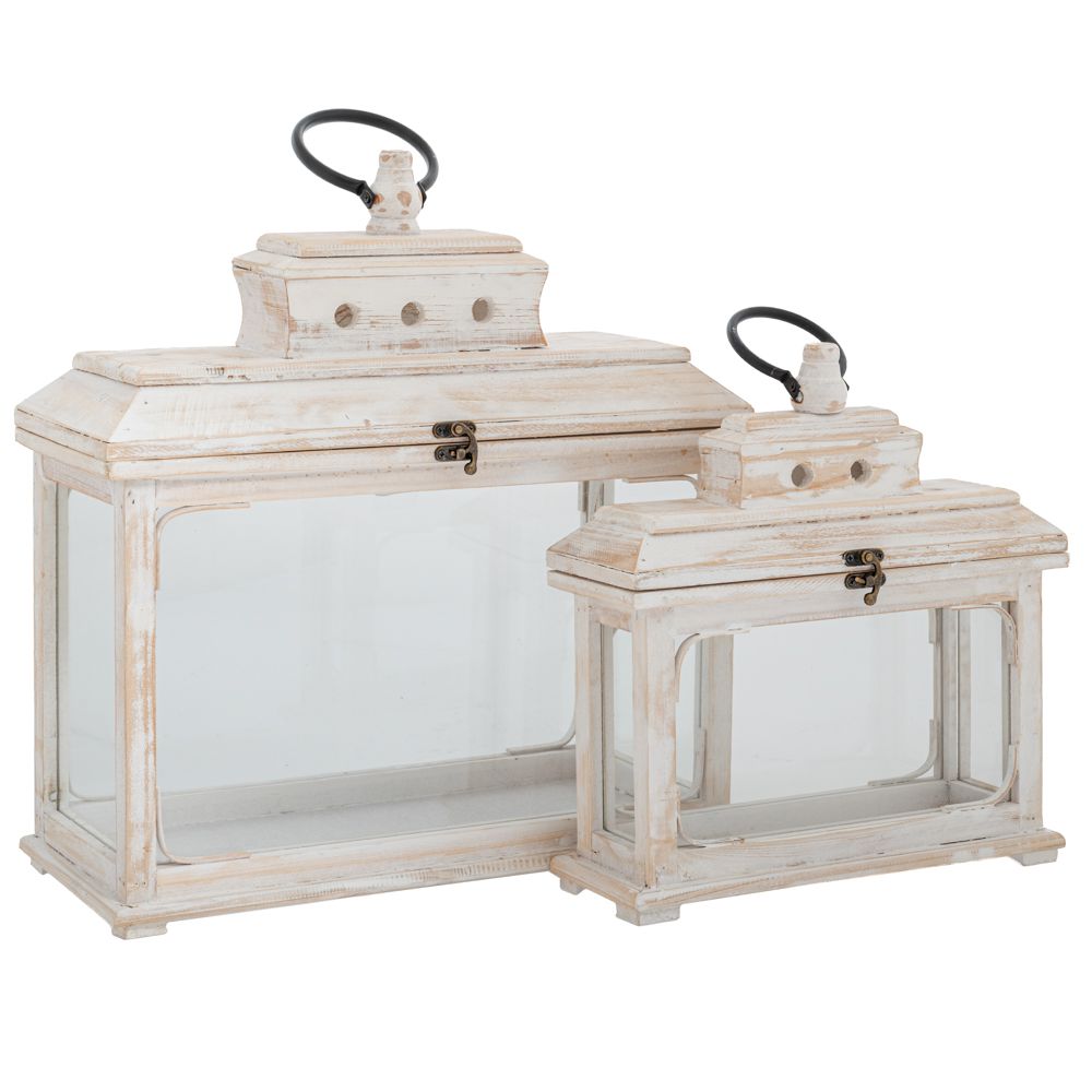 ΣΕΤ 2 ΦΑΝΑΡΙ ΛΕΥΚΟ ΞΥΛΙΝΟ ΜΕ ΜΑΥΡΟ ΧΕΡΟΥΛΙ 30,5Χ22Χ52,5 21,5Χ16Χ40ΕΚ