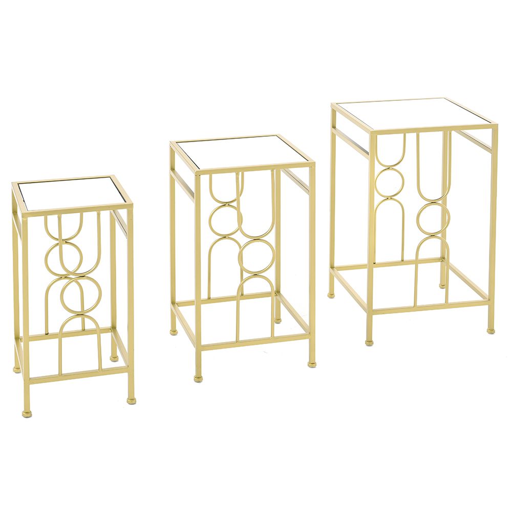 ΣΕΤ 3 ΧΡΥΣΟ ΜΕΤΑΛΛΙΚΟ ΤΡΑΠΕΖΙ ΜΕ ΚΑΘΡΕΦΤΗ 35Χ35Χ60 30Χ30Χ55 25Χ25Χ50ΕΚ