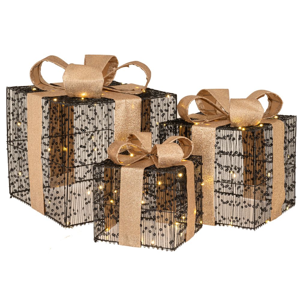 ΣΕΤ 3 ΜΑΥΡΑ ΔΩΡΑ ΜΕ LED ΦΩΣ 15Χ15Χ17ΕΚ+20LED 20Χ20Χ23ΕΚ+30LED 25Χ25Χ30ΕΚ+40LED ΜΕ ΧΡΥΣΟ ΦΙΟΓΚΟ