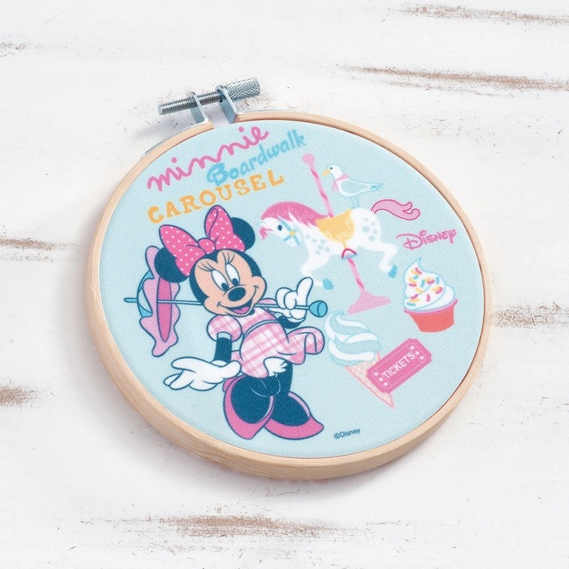 Disney διακοσμητικό χειροποίητο στρογγυλό τελάρο κεντήματος με διάμετρο 13cm. Είναι ντυμένο με ύφασμα print Minnie Carousel.