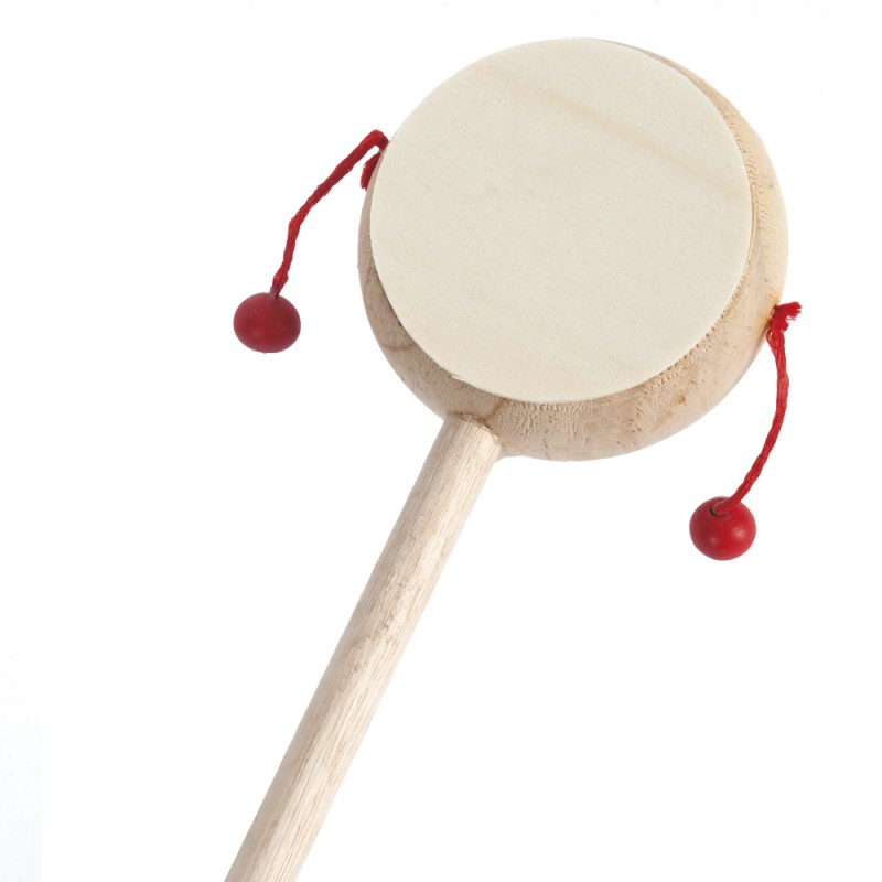 Ξύλινο natural τυμπανάκι με αυτοκόλλητο print διπλής όψης με κόκκινο σχοινάκι.