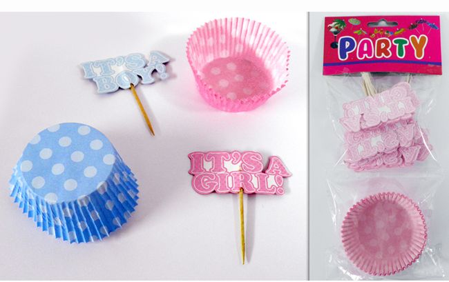 Βάση για κεκάκια σε διάφορες αποχρώσεις και σχέδια με topper “IT’S A BOY!” και “IT’S A GIRL!”
