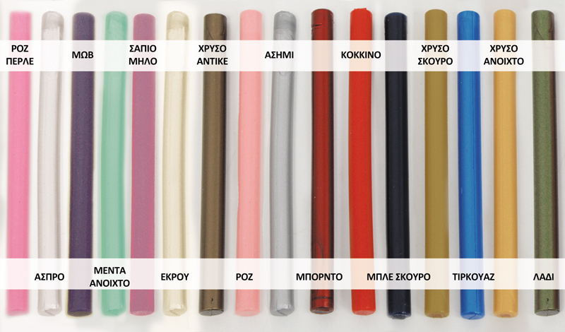 | Χρώμα | Blue Navy, Ασημι, ασπρο, Γκρι-Ροζ, εκρου, Καφέ, κόκκινο, Μπλε, Μπορντώ, Πολύχρωμο, ροζ, Τυρκουάζ, Χρυσό-Ανοιχτό, Χρυσό-Αντικέ, Χρυσό-Σκούρο |