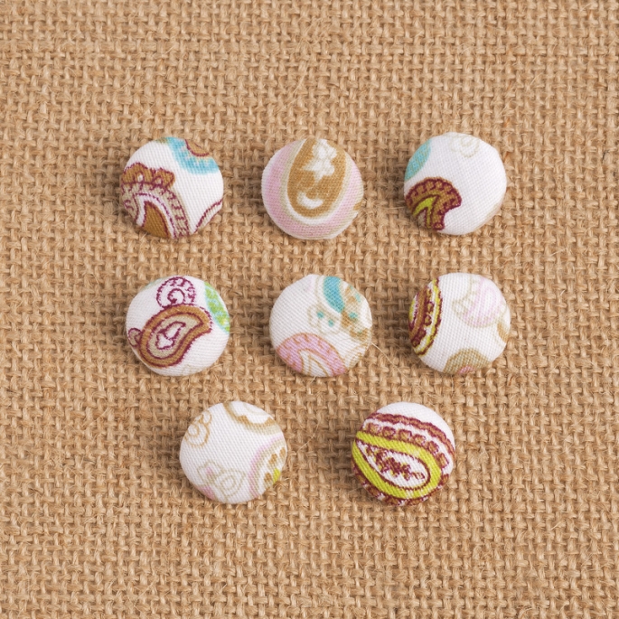 Υφασμάτινα διακοσμητικά κουμπιά με διάμετρο 1.8cm για διάφορες συνθέσεις. Σε εμπριμέ πράσινες & καφέ αποχρώσεις. Κάθε καρτέλα περιέχει 8 τεμάχια.