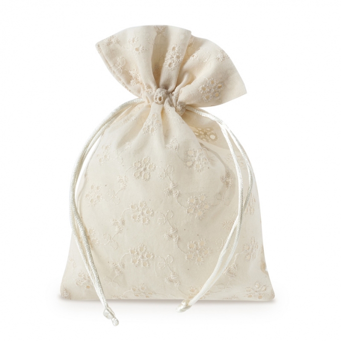 Υφασμάτινο πουγκί.Κλασσικό σχέδιο με ….”βελονάκι”…! Embroidery σε ivory χρώμα.