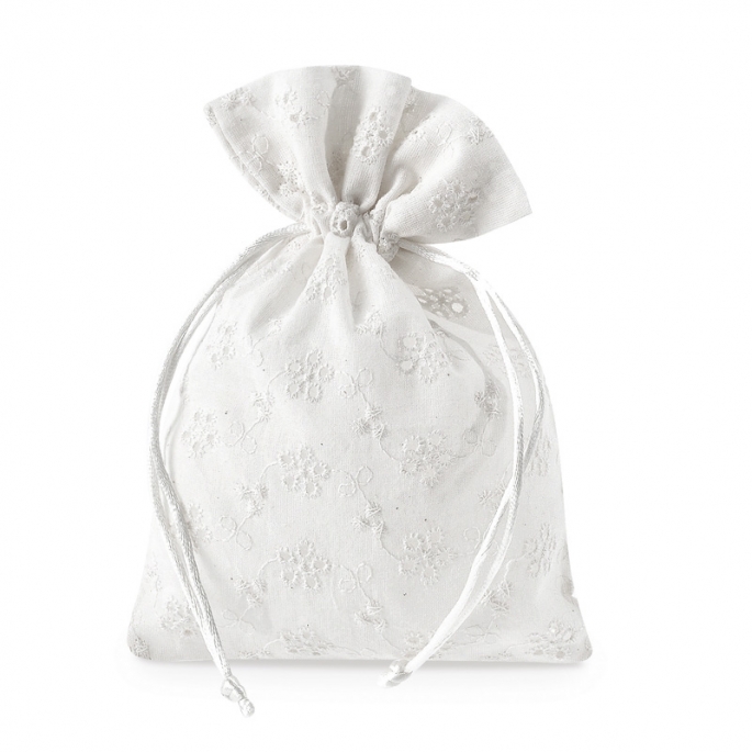 Υφασμάτινο πουγκί.Κλασσικό σχέδιο με ….”βελονάκι”…! Embroidery σε λευκό χρώμα.